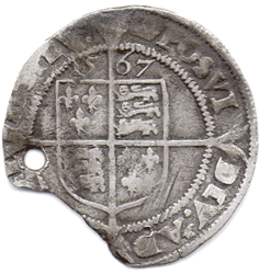1569 Elizabeth I Sixpence - 3-4th issue - Small bust. Mintmark: Coronet.
