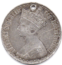 1858 E Florin - Obv. Small hole at top (12 o'clock)