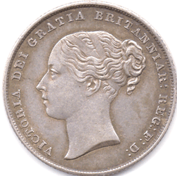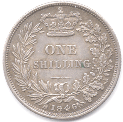 1846 Shilling - Obv. 3 stops after REG.: Toned EF