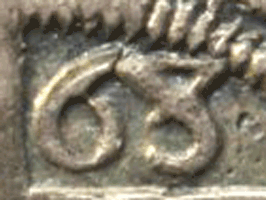 1568 Elizabeth I Threepence - 3rd issue - Tall bust Date: This is a very unusual variety of this strange "8". I consider that the 8 on my example is made up of an x and a semi-circular top. * For a long time the 'normal 68' was considered to be an overdate of 8 over 7 that now appears incorrect as virtually every example generally found is with the flat top 8 and the broken diagonal at 7 & 8 o'clock. A possible reason for the normal flat top 8 is that if the top of the 8 had been rounded it would have extended into the toothed border above. The coin is good round and appears to be unclipped. Axis: ↑ ↑ It is possible that coin has been in the ground, possibly a clay environment, at one time ! Grade: Obv. Portrait - Fair - Fine. Legend Fine+