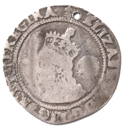 1572 Elizabeth I Sixpence - 3-4th issue - Small bust. Mintmark: Ermine. Small pin-hole at top. Ex-creased but now flattish, left side. Reasonable portrait. legend mostly clear both sides The coin is round and no real sign of clipping. Grade: Fine Axis slightly off centre