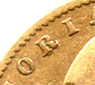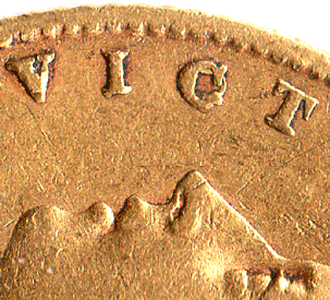 1861 Shield back sovereign Obv. C of VICTORIA over rotated C (180º),