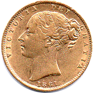 Obv. 1861 Shield back sovereign Incorrect repair to the E of DEI
