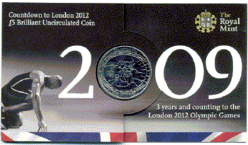 2012 Olympic games 50 pence coin (dated 2009). Designed by Florence Jackson, 8 years old, from Bristol. Only available in the Blue Peter / Royal Mint pack.