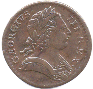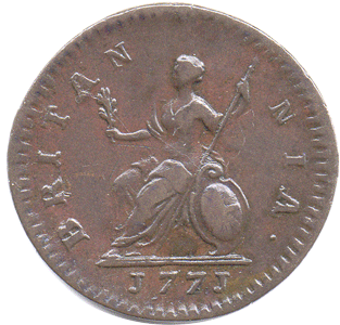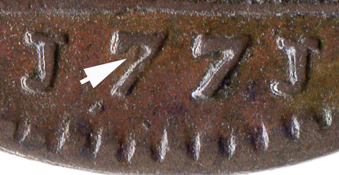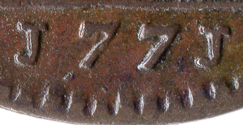 1771 is a very scarce farthing and 3 reverse dies are know. 1771 - Reverse A - The olive branch points to the right hand limb of the 1st letter N of BRITANNIA 1771 - Reverse B - The olive branch points to the left hand limb of the 1st letter N of BRITANNIA 1771 - Reverse C - The olive branch points to the right hand limb of the letter A of BRITANNIA Date: The 1st 7 is over a (part) down stoke of a 1. Reverse A - is the RAREST. Reverse B is the easiest to find. Reverse C - is SCARCE. ~~~~~~~~~~~~~~~~~ CF 1771 C - Obv. Very slight wear to a couple of leaves otherwise - EF? to possibly slightly better Rev. A couple of tiny scuffs in the field. Date: The 1st 7 is over a (part down stroke of a 1