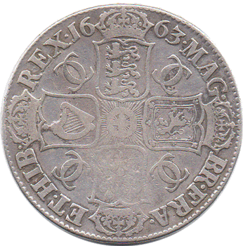 Charles II Crown - 1663 (2nd year of issue) Edge: XV.