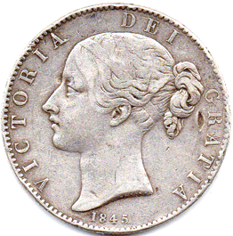 Crown 1845 A - Obv. Small dig between back of Victoria's bun & R of GRATIA