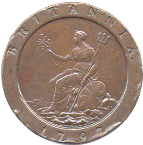 1797 Twopence - Obv. Slight edge bruising in several places, 3, 4, 7, 11 & 12 o'clock Rev. Slight edge bruises 1, 2, 3, 4, 5, 6, 7, 9 & 10 o'clock. This is the average sort of bruising one might see on this grade of coin. Some don't even really show until one examines the rim at an angle ! Grade: Otherwise VF+