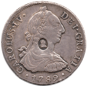 1789 Dollar, with oval countermark, Mexico 8 Reales Mintmark: Mexico I.J