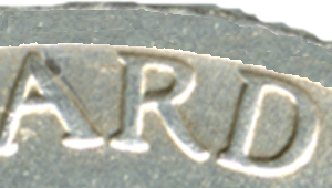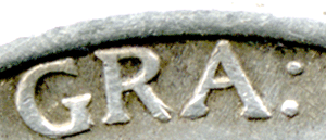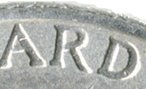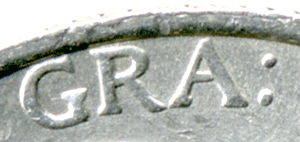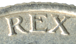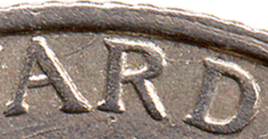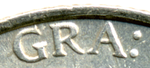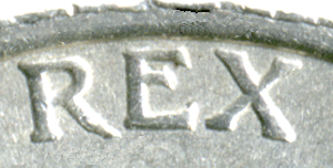 styles of tails of R. Top bar of E in Obv. 1 longer than for Obv. 2a & 2