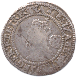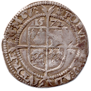 1572 Elizabeth I 6d. 4th issue Obv. Mm: Ermine Rev. Mm. Unknown and unlisted ( A cross or sword like handle to 7 spike mace !!??) The coin has been creased in the past but now straightened. Well centred and a nice round unclipped coin. SOLD - Left as reference