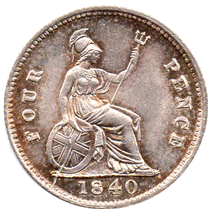 GR 1840 Ac - Obv. Trace of ghosting with single shield line between the back of Victoria's neck and F: D: The rev. exergue or ground line also is clear from the inner colon dot to halfway below Victoria's truncated neck. Extra colon dots after F: D: Rev. Type A - Die crack from edge at 7 o'clock running through the exergue line into the base of the shield - vertically up to the centre of the shield and then turns left at a 45 degree angle to the edge of the top of the left side centre cross. Date: Type c - Tall pointed top to 4. Large oval '0'. Grade: Choice all over golden tone. A lovely coin pAS