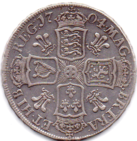 1704 Halfcrown - Edge: TERTIO. Rev. Plumes