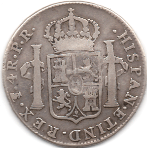 1782 Octagonal countermark on Bolivian 4 Reales (Emergency money - Half Dollar) Mint: Potosi (PTS)