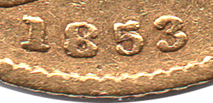 We have 2 x 1853 half sovereigns. One with a large date and one with a smaller date. These two varieties are know and recorded and priced in proof condition but this variety is not listed for the currency coin. The Large date variety is Fine +/Fine The smaller date variety is Fine. The Proof Large date is considered scarcer than the small date. Which is the scarcer of the two varieties !?
