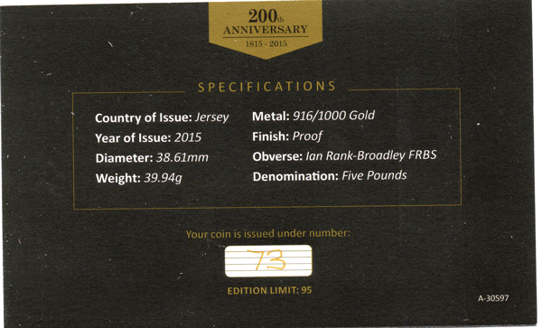 2015 Jersey 5 Pounds - Proof 200th Anniversary of Waterloo