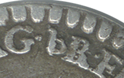 Rev. b.R - The B is in very poor shape and the repair may have been done in error on the R However one can see that the error or broken 'B' die was spotted and a repair has been attempted but on the 'R' instead of the 'b' !!! No stop after FR HI for HI(B) Date: Stop after REGINA (before 1) & after 4 (before MAG).