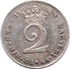 1784 Maundy 2d - Part of a lower S shows below the S of GEORGIVS - It appears as a couple of curls sticking out of the back of the head ! (A poor initial alignment when repairing the S). The middle I of III also has had a poor alignment repair. * Of the 6 examples that I have had of the 1874 Maundy 2d each coin appears to have had this poor alignment repair. Does anyone have an example without this repair ?