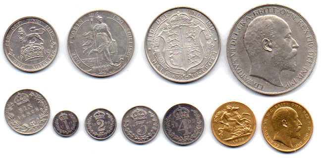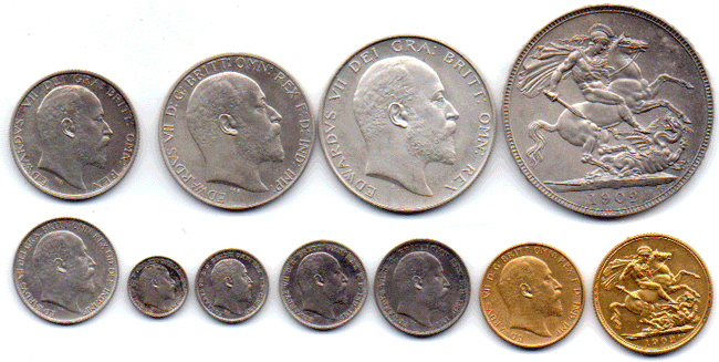 1902 Matt proof (short set) 11 coins Gold: Sovereign & Half Sovereign (Very faint hair lines - do not show up on scan) Silver: Crown, Half-Crown, Florin, Shilling, Sixpence, Maundy 4d; 3d; 2d; 1d Left as Reference
