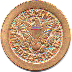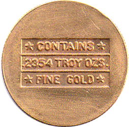 In Saudi Arabia in the 1940's paper money was unacceptable and payment to the government needed to be made in gold or silver. The Aramco Oil Company needed to pay the Saudi government royalties and other payments in gold. and had the Philadelphia Mint produce some gold 'disc' like coins, as above, for these payments. U. S. government specifically minted approximately 121,364 of these 'discs' as bullion type coins. The coins were the same weight and fineness as a British Sovereign and contained 0.2354 of an ounce of gold or approximately 5 U.S. dollars. Most of these Sovereign type 'discs' were re-melted back into gold bullion bars and so the remaining examples still available are now quite rare.