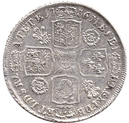 1736 Shilling - Young head - Rev. Roses & Plumes