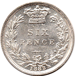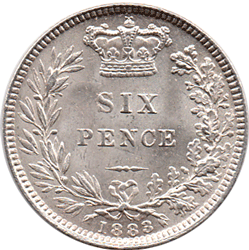 * I discovered back in 1995 that Reverse D had been revived as a working die for 1883 since it was 1st used in 1881. This was contrary to researchers. 1882 Appears to have a unique new reverse die (E) which appears not to have been used in 1881 or 1883. This reverse is unlisted in the Davies book on English Silver Coin from 1816 which is the main coin collectors 'bible' for varieties. Even the recent Spink remake of the English Silver Coinage since 1649 does not list this reverse as used for 1883. Over the years I have made a point of purchasing any 1883 sixpences with reverse D that were unrecognised by other dealers or auction houses. They are very scarce or rare. Over the years my ratio of finds of reverse D to reverse F for 1883 has been 1 per 10 or + I have kept them off my website until now. However, as I am trying to add all 'new' unlisted items to my website they are now being included. In those 20 years I have only managed to find 4 reasonable examples and one poor one ! I find that the easiest way to recognise reverse D on 1883 sixpences is by the position of the I of SIX above the N of PENCE (to left leg). As pointed out above there are other differences but these are harder to determine this reverse.