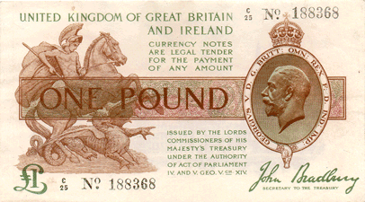 1917 Bradbury One Pound - T16 - 3rd issue C/25 No. 188368