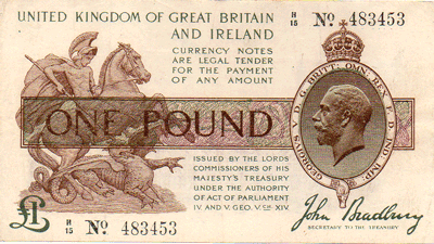 1917 Bradbury One Pound - T16 - 3rd issue H/15 No. 483453