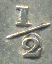 TH 1842 B - The 2 of the fraction has been repaired with the wrong punch. They have used a smaller 2 font - that as used for the date ! Small 2 over Larger 2. Large gap at top between the 2's. TH 1842 C - Both the 1 & 2 of the fraction have been double struck. This is not the same as Type B with small 2 over larger 2 These are just repairs as the raised 1 of the fraction has been repaired with the 1 punched in higher over lower 1. The raised 2 has been punched in lower over higher 2. Very small gap between tops of 2's. The front tip of the foot of the lower 2 sticks out slightly from the repaired 2. Not to be confused with Type B - Larger over smaller 2. (Noticed by Bill Pugsley - May 2010)