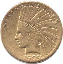 USA 1909 10 Dollars - Indian head issue [0.4839 AGW]