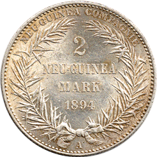 An 1894 German New Guinea 2 Mark in really choice condition with a very light hint of toning EF+ The coin is brighter than this picture shows ! Our Price.......................£2450.00