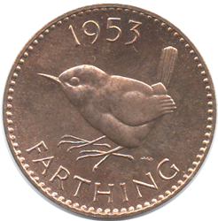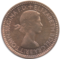 1953 Proof farthing - 2 + A (F. 662A) - Obv. Very slight darker tone at base of bust.