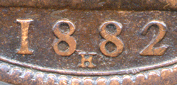 BP 1882 M - R + p Date: 2 over 1 (More difficult to spot as only a small tip of the 1 shows half way up the centre slope).