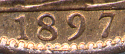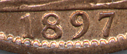 BP 1897 A - Date type A 10 to 10 1/2 teeth from 1 to 7 depending on the angle that the 7 is put in (some appear slightly more upright than others !). It also depends if measured from the leg of the 7 - upright or along the leg - slanting ! * On some examples, as per this example, the 9 is of a slightly larger font size (compare with type B) ** Also seen with 7 slightly closer to 9