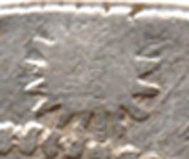 Rev. Mintmark: Sun. Mispelling of AVSPICE - An 'H' has been added between the C & E - reads AVSPICHE Both Mintmark: Sun over Eye and the mispelling AVSPICHE are unlisted in reference books or catalogues. RARE