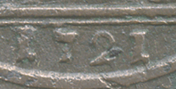 1721 Halfpence - 1 over 0 1721 Halfpence - 1 over 0