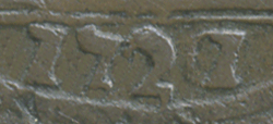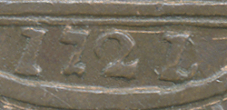 1721 Halfpence - equal size numerals 1721 Halfpence - large 2 over smaller 2