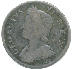 1739 Halfpenny - Obv. There appears to be no stops in legend - there might be the hint of one after GEORGIVS or it could be a tiny spot of clag !! Rev. Single exergue line !? * The coin might be slightly claggy and worn but there appears to be no hint of the fine 2nd exergue line above the date !