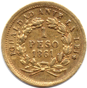 1861 Chile 1 Peso - (Decimal currency) 1.52 grams (0.0441 AGW)
