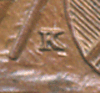 Restrike proof – Type R98. Peck 1354 – Bronzed [vs] Obv. 1. K Ÿ on the lower fold of the shoulder drapery. 2. Without incuse hair curl to right of tie-knot. 3.