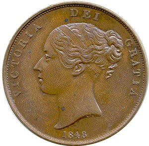 1848 Copper penny - date: last 8 over 6 - very scarce in any condition especially so in this high grade. The best we have found - so far.