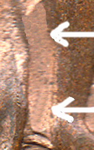 "What and why" was this 'single tie ribbon' doing on the coin ? It did not appear to be improvement to the original design as it looked out of place. Why on some pennies and then not on others ? There seemed to be more questions than answers. I could think of no good explanation for this variety until working at home, later that month that eventually I did work out " The what and the why" !