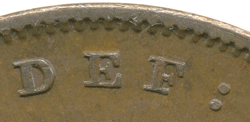 Both colon dots closer to DEF & the top colon dot also - tilts backwards: CP 1858 F (Type 1 - Smaller numerals)