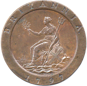 1797 Twopence - Obv. Nice coin - no edge nick Rev. Very slight claggy deposit between R of BRITANNIA & the top berries of the olive branch. Hint of the very slightest edge bruise at 5 o'clock. Does not even show on picture ! Nice example and scarce in higher grades. Grade: EF+