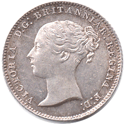 GR 1840 Aa - Obv. Extra small colon dot after D of D: F: just behind the lower colon dot. Rev. Type A - Very faint die crack line between N & C of PENCE. Slight trace of Victoria's ghosted head to the right of Britannia's legs Date: Type a - Flat top 4 with a die flaw running from the edge through the upright of the 4 up and into the exergue line. Oval 0 in date. Grade: Obv. Bright centre, legend lettering toning. Rev. Slightly bright centre with legend and date area darkish tone. EF+-pAS
