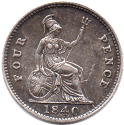 GR 1840 Ca - Obv. - Extra colon dots added to the F: D: The F: has extra dots just above and below the top colon dot and on the lower colon dot there is an extra strike attached to the bottom left of the colon dot. The D: has an extra dot above and to the left of the top colon dot and an extra dot between the D & the lower colon dot ! Rev. Type A - Strong clear ghosting from die clash with obverse die. Victoria's forehead, eye, nose, mouth and chin are clearly visible. Die crack from edge into the P of PENCE at 1 o'clock and also from the edge at 5 o'clock running into Britannia's toe upwards to Victoria's ghosted chin ! Date: Type c - Pointed top to 4. All of the numerals are double struck. The 40 are entered below the base-line. Grade: Obv. The centre is slightly bright with darkish toning around legend. Rev. Has an all over dark tone. EF?