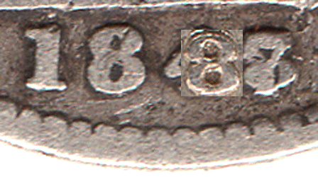 This unusual over-date certainly has the 7 on top of an 8 which was likely caused by the engraver taking an 8 punch in error first to the date and then correcting with a 7.