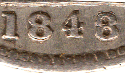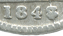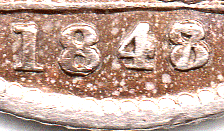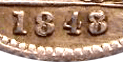 On examination of the 4 in the 1847 groat picture one can see that it is a small slimmer 4, total unlike any 4 font used for the 1846 groats (which are larger). If we examine the 4 font used in 1848 with 8 over 7 and 1848 plain date one can see that the 4 font is virtually identical in shape, style and size ! I therefore suggest that the 7 is over an 8 and not a 6 ! I suggest that what might have happened back in 1847 & 1848 is: Looking back at the mintage for 1846 - it was fairly large at 1,817,640 coins struck. The mintage for 1847 was recorded at 225,720 coins it is possible that that the entire number of Groats struck in 1847 was with 1846 (remaining) dies ! The Royal Mint was using up dies & saving money ! Dies for 1847 Groats were probably made later that year for possible use but in fact never used ! That is the reason a plain 1847 dated Groat has never been found. In 1848 as it is approaching the end of the 1840s it would be in the Royal Mint's interest to use up remaining dies that still had potential use. 1848 Groats have been found with the last 8 over 6 and the 8 over 7. That shows that there were still life in 1846 dies as it is an easier variety to find than the 1848 8 over 7 variety. It is normal protocol to call the last numeral of the date that is most pronounced to be the lead coin. In the case of the 1847 groat because the 7 is higher than the under-numeral we call this date and variety 1847 date 7 over 8. However, I suggest that this coin was struck in 1848 and not in 1847 and that the Royal Mint employee did NOT make a mistake of striking the 8 punch in the wrong place - as suggested by another coin company with this comment.
