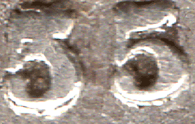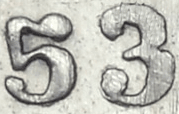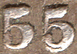 GR 1855 A - Date: Type a The Last 5 is slightly below the base line (on this example) The 5's are of equal size and font Date width is 9 ½ (9 teeth and 1 x ½ ) [Normal spaced width] GR 1855 A - Date: Type b The 5s are on the base line The 5's are of equal size and font (possible the last 5 faint double strike !?) Date width is 9 (8 teeth and 2 x ½ ) [Narrower date - 55 closer together]