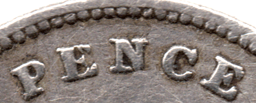 GR 1855 A - Rev. Type A - Small E in PENCE GR 1855 B - Rev. Type D - Large E over smaller E in PENCE Date All of the 1855 groats have the 18 of the date in a fixed position. The position of the 55 can vary slightly. 9½ - 10 teeth normal. 9 teeth - narrow.